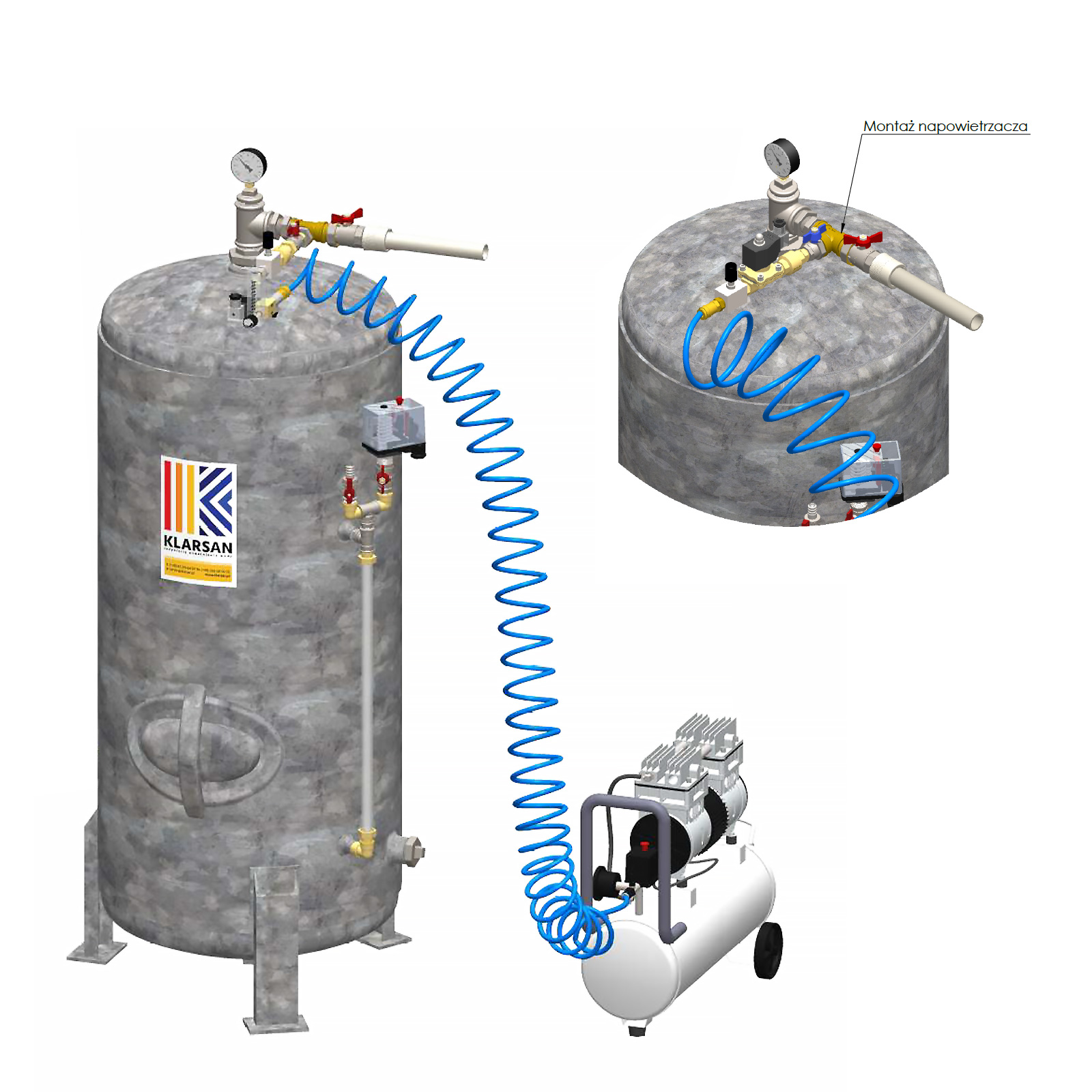 Automatyczny system napowietrzania wody wraz z dedykowanym osprzętem jest dedykowany do stosowania stacjach uzdatniania wykorzystujących proces aeracji. Współpracuje ze zbiornikami bezprzeponowymi. Urządzenie zapewnia stały i kontrolowany dopływ wysokiej jakości powietrza.